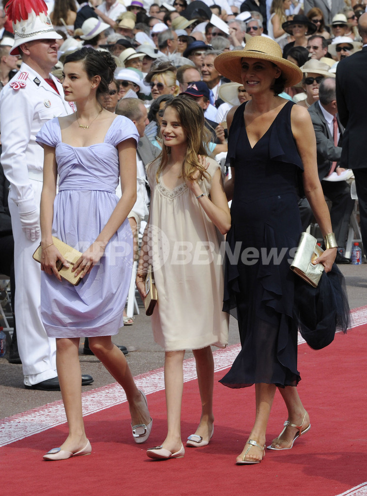 会場には、公妃のウエディングドレスを手がけたジョルジオ・アルマーニ(Giorgio Armani)をはじめ、カール・ラガーフェルド(Karl Lagerfeld)やロベルト カヴァリ(Roberto Cavalli)といったデザイナーや、モデルのイネス・ド・ラ ・フレサンジュ(Ines de la Fressange)、ナオミ・キャンベル(Naomi Campbell)、「LVMH」のベルナール・アルノー(Bernard Arnault)会長兼CEO夫妻などファッション界の大御所も多数出席した。(c)AFP
