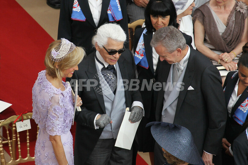 会場には、公妃のウエディングドレスを手がけたジョルジオ・アルマーニ(Giorgio Armani)をはじめ、カール・ラガーフェルド(Karl Lagerfeld)やロベルト カヴァリ(Roberto Cavalli)といったデザイナーや、モデルのイネス・ド・ラ ・フレサンジュ(Ines de la Fressange)、ナオミ・キャンベル(Naomi Campbell)、「LVMH」のベルナール・アルノー(Bernard Arnault)会長兼CEO夫妻などファッション界の大御所も多数出席した。(c)AFP