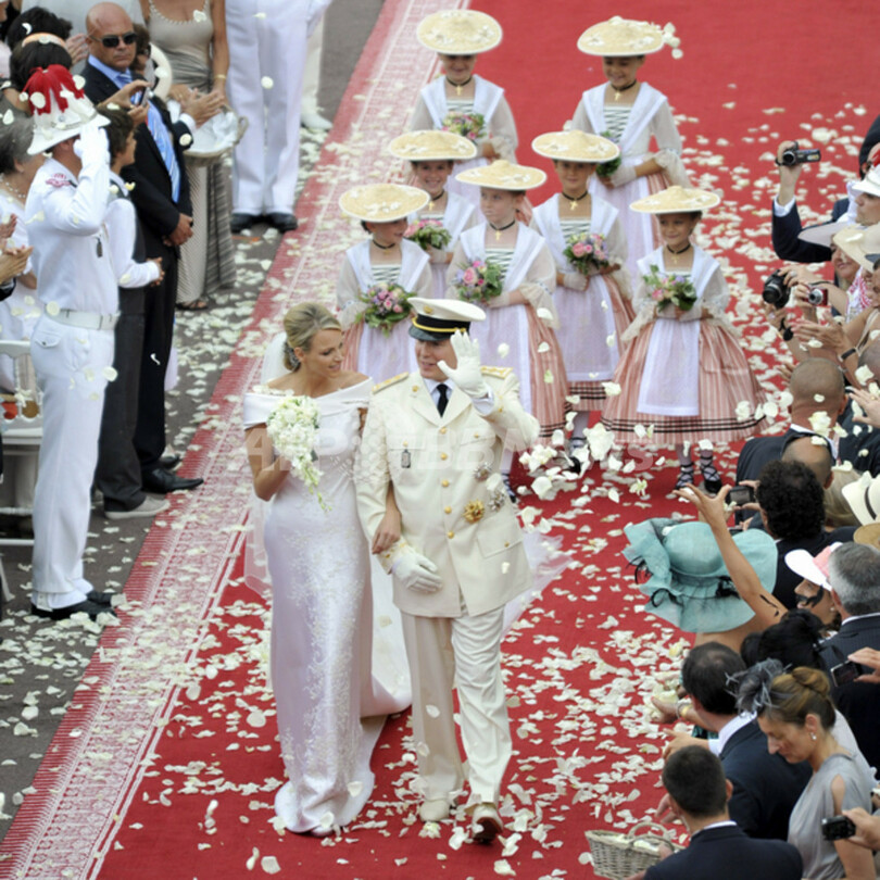 式には、ウエディングドレスを手がけたデザイナーのジョルジオ・アルマーニ(Giorgio Armani)、カール・ラガーフェルド(Karl Lagerfeld)、モデルのナオミ・キャンベル(Naomi Campbell)のほか、公妃と親交のある世界のトップアスリートも祝福に駆けつけた。