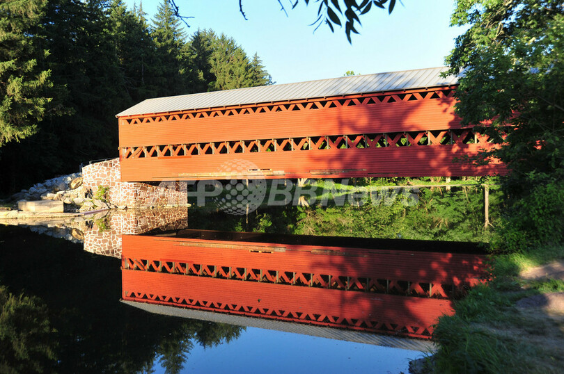 写真は、1852年に建てられた屋根つきの橋「Sachs Covered Bridge」。南軍は、この橋をわたって撤退した(2011年7月1日撮影)。(c)AFP/Karen BLEIER
