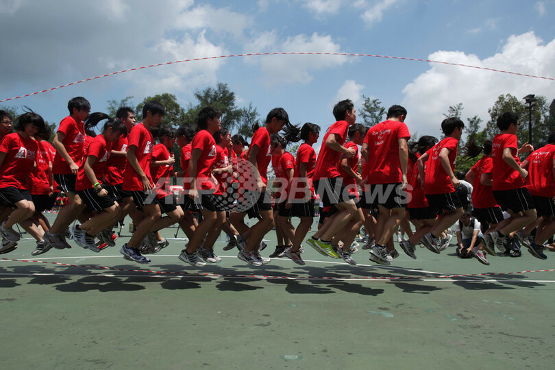 ニュース ライフ こぼれ話 40人でなわとび「ダブルダッチ」、ギネス記録更新 香港 2011年7月4日 19:44 発信地:香港 このニュースをシェア ‹ › ❮ 1/6 ❯ 香港・ビクトリア公園(Victoria Park)で、なわとびの「ダブルダッチ」の世界記録に挑戦する子どもたち(2011年7月3日撮影)。(c)AFP/ED JONES 画像作成中 ! 【7月4日 AFP】香港のビクトリア公園(Victoria Park)で3日、2本の縄を使って跳ぶなわとびの「ダブルダッチ」に40人の子どもたちが挑戦し、ギネス世界記録(Guiness World Records)を達成した。子どもたちはまた、長なわとびの香港記録にも挑戦。子どもたち800人が一斉に飛び記録を達成した。(c)AFP ライフ 一覧へ> メディア・報道関係・法人の方向け 写真・動画 購入のお問合せ>
