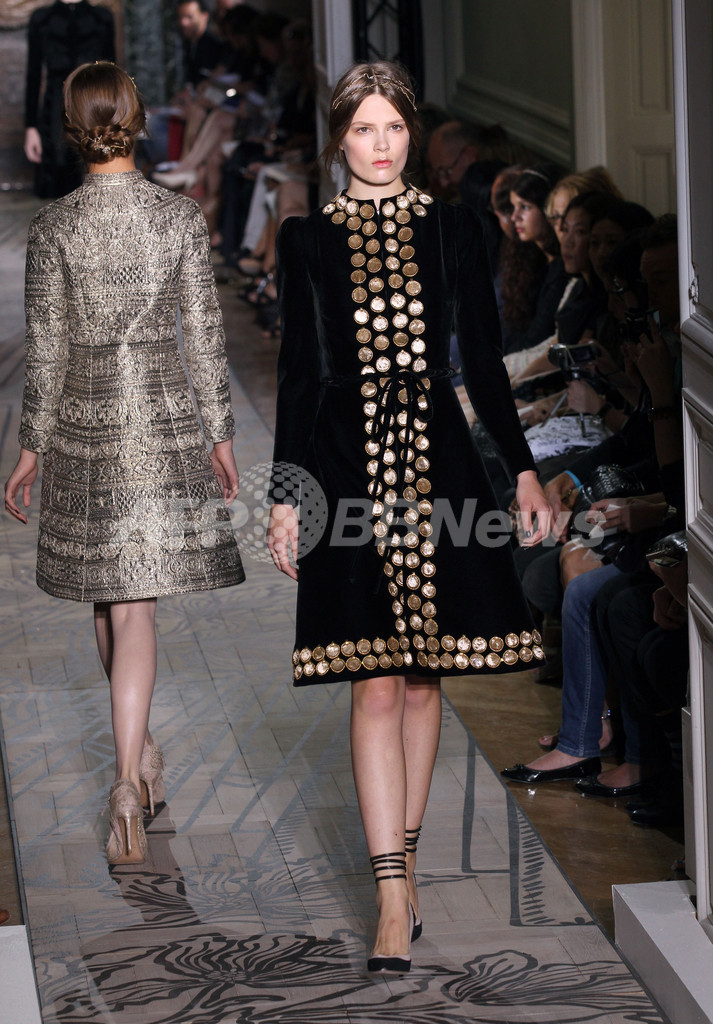 【7月6日 AFP】フランス・パリ市内で4日から7日まで11/12年秋冬オートクチュールコレクションが開かれている。6日には、マリア・グラツィア・キウリ(Maria Grazia Chiuri)とピエールパオロ・ピッチョーリ(Pierpaolo Piccioli)が手がける「ヴァレンティノ(VALENTINO)」が新作を発表した。(c)AFP