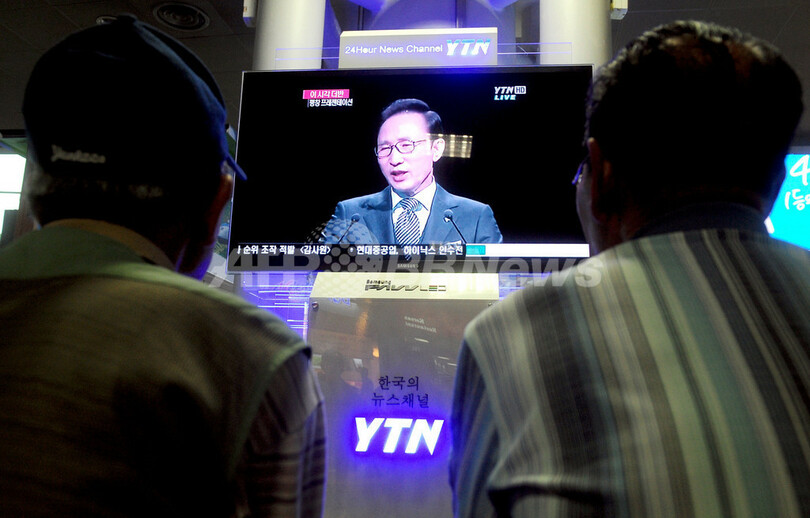 写真はテレビで中継された総会の様子を見る人(2011年7月6日撮影)(c)AFP/PARK JI-HWAN