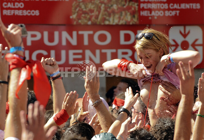 【7月7日 AFP】スペイン北部パンプロナ(Pamplona)で6日、同国で最も有名な祭り「サン・フェルミン祭(San Fermin Festival)」の開幕を告げるイベントが行われ、市庁舎前の広場は赤いスカーフを身に付けた人びとで埋め尽くされた。9日間の会期中には牛追いなどが行われる。(c)AFP