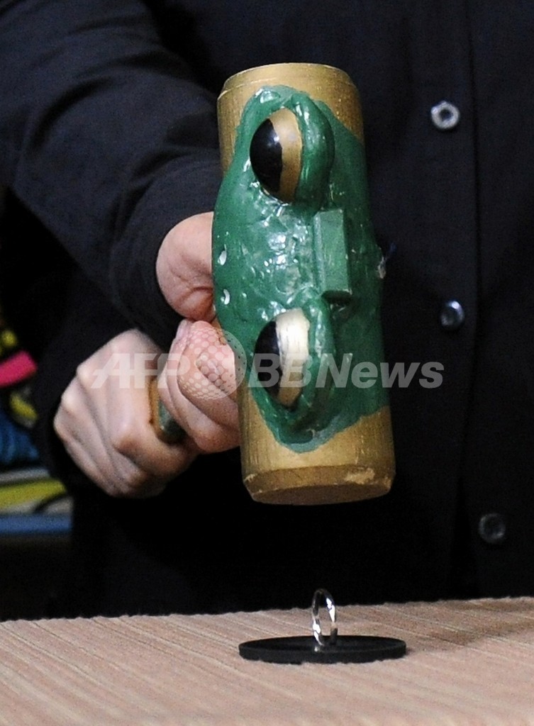 【7月10日 AFP】小ぎれいな装いに身を包んだ夫と妻は、近しい友人たちに囲まれて並んで立ち、牧師役の男性は2人に結婚指輪をハンマーで叩きつぶすよう促す。