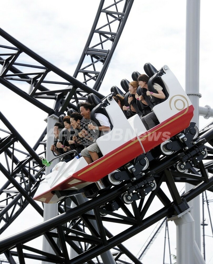 【7月8日 AFP】山梨県富士吉田市にある遊園地、富士急ハイランド(Fuji-Q Highland)で8日、全長1000メートル、垂直タワーの高さ43メートル、最大落下角度121度の新ローラーコースター「高飛車」がメディア公開された。