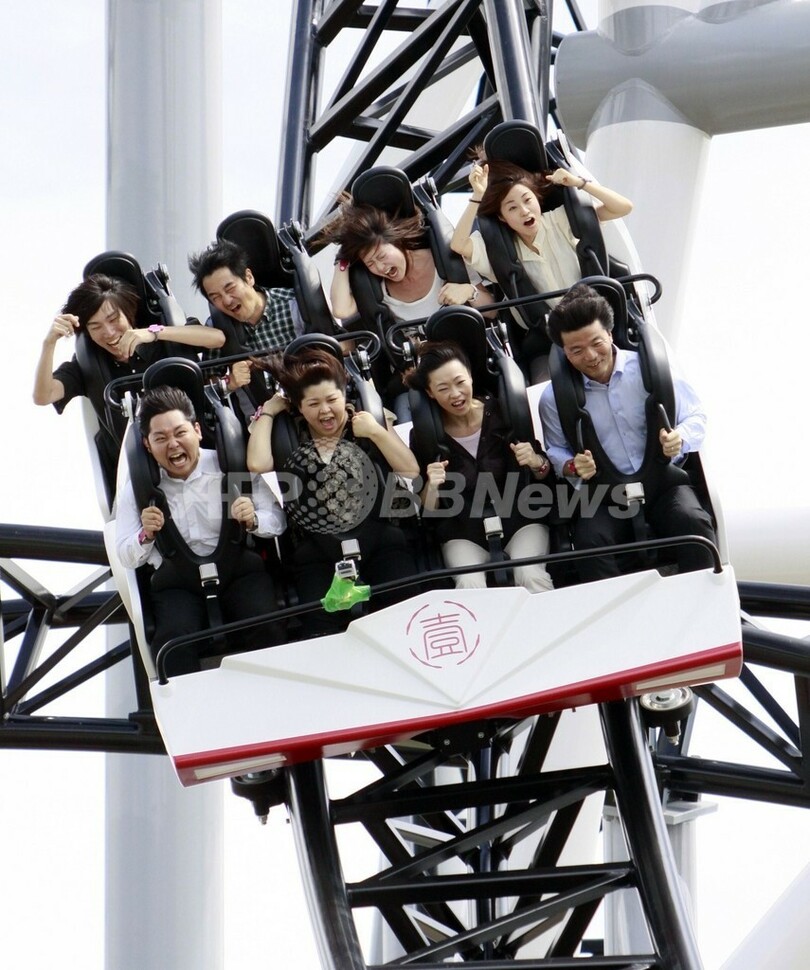 【7月8日 AFP】山梨県富士吉田市にある遊園地、富士急ハイランド(Fuji-Q Highland)で8日、全長1000メートル、垂直タワーの高さ43メートル、最大落下角度121度の新ローラーコースター「高飛車」がメディア公開された。