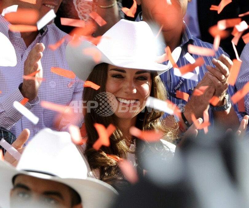 写真はカウボーイ姿でパレードを見学するキャサリン妃(2011年7月8日撮影)。(c)AFP/TIMOTHY A. CLARY
