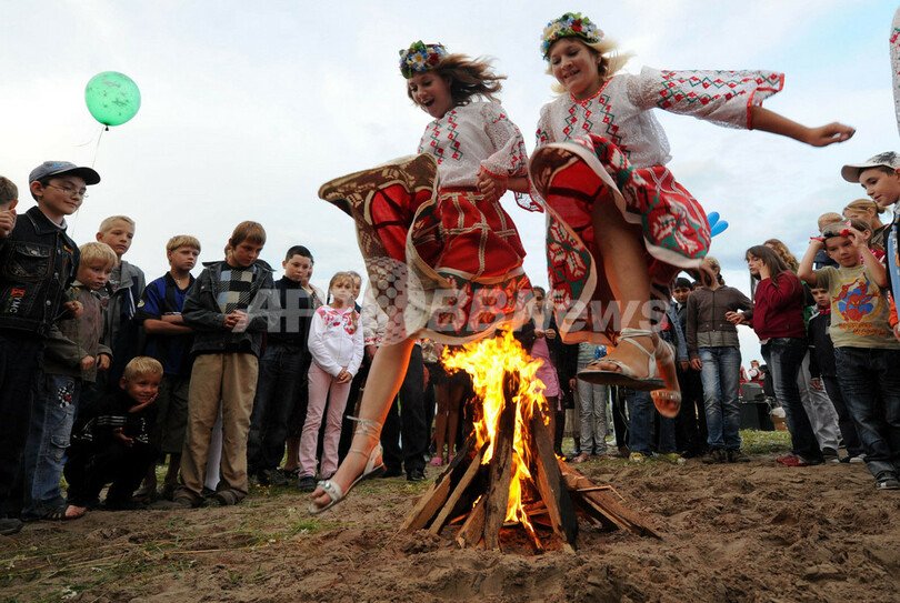 ニュース ライフ ベラルーシで伝統的な祝祭「イワン・クパーラ」 2011年7月11日 6:49 発信地:Turov/ベラルーシ [ ロシア・CIS ベラルーシ ] このニュースをシェア ‹ › ❮ 4/5 ❯ ベラルーシのTurovで行われた「イワン・クパーラ(Ivan Kupala)」の祭りで、たき火を飛び越える女性たち(2011年7月7日撮影)。(c)AFP/VIKTOR DRACHEV 画像作成中 ! 【7月11日 AFP】ベラルーシの首都ミンスク(Minsk)の南270キロにあるTurovで7日、洗礼者聖ヨハネ(St. John the Baptist)を祝福するスラブ正教の伝統的な祝日「イワン・クパーラ(Ivan Kupala)」の祭りが開催された。祭りでは、川にろうそくの船を流す、たき火を飛び越える、炎の矢を放つなどの行事が行われた。(c)AFP ライフ 一覧へ> メディア・報道関係・法人の方向け 写真・動画 購入のお問合せ>
