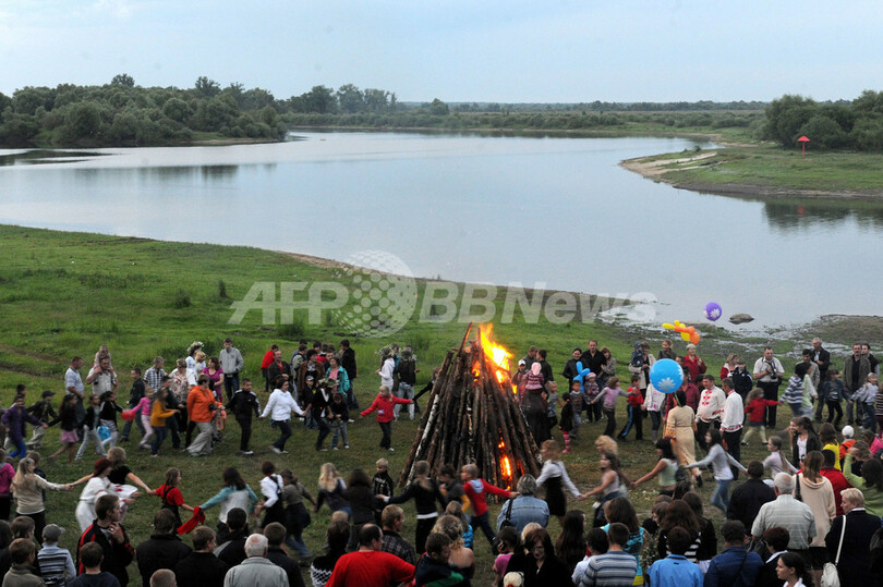 ニュース ライフ ベラルーシで伝統的な祝祭「イワン・クパーラ」 2011年7月11日 6:49 発信地:Turov/ベラルーシ [ ロシア・CIS ベラルーシ ] このニュースをシェア ‹ › ❮ 3/5 ❯ ベラルーシのTurovで行われた「イワン・クパーラ(Ivan Kupala)」の祭りで、川沿いで伝統舞踊をする人びと(2011年7月7日撮影)。(c)AFP/VIKTOR DRACHEV 画像作成中 ! 【7月11日 AFP】ベラルーシの首都ミンスク(Minsk)の南270キロにあるTurovで7日、洗礼者聖ヨハネ(St. John the Baptist)を祝福するスラブ正教の伝統的な祝日「イワン・クパーラ(Ivan Kupala)」の祭りが開催された。祭りでは、川にろうそくの船を流す、たき火を飛び越える、炎の矢を放つなどの行事が行われた。(c)AFP ライフ 一覧へ> メディア・報道関係・法人の方向け 写真・動画 購入のお問合せ>