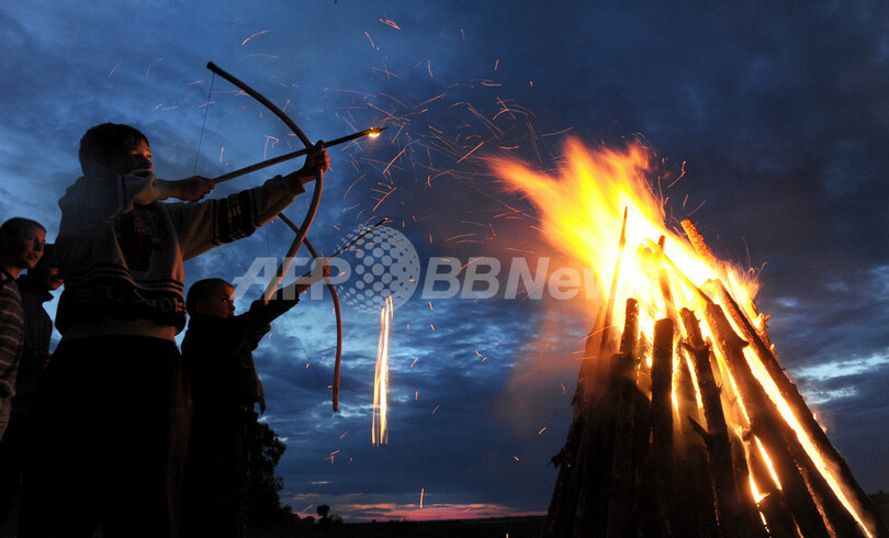ニュース ライフ ベラルーシで伝統的な祝祭「イワン・クパーラ」 2011年7月11日 6:49 発信地:Turov/ベラルーシ [ ロシア・CIS ベラルーシ ] このニュースをシェア ‹ › ❮ 2/5 ❯ ベラルーシのTurovで行われた「イワン・クパーラ(Ivan Kupala)」の祭りで、火矢を放つ少年たち(2011年7月7日撮影)。(c)AFP/VIKTOR DRACHEV 画像作成中 ! 【7月11日 AFP】ベラルーシの首都ミンスク(Minsk)の南270キロにあるTurovで7日、洗礼者聖ヨハネ(St. John the Baptist)を祝福するスラブ正教の伝統的な祝日「イワン・クパーラ(Ivan Kupala)」の祭りが開催された。祭りでは、川にろうそくの船を流す、たき火を飛び越える、炎の矢を放つなどの行事が行われた。(c)AFP ライフ 一覧へ> メディア・報道関係・法人の方向け 写真・動画 購入のお問合せ>