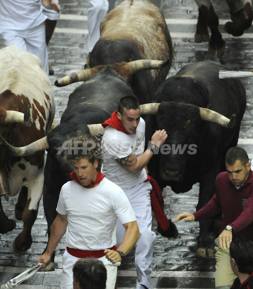 佳境に入ったスペインの牛追い祭り、負傷者も続出