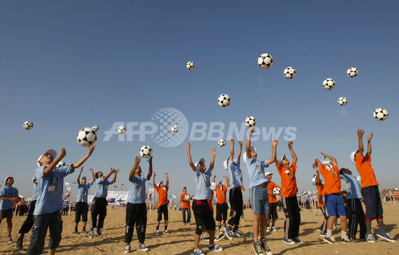 パレスチナの子どもたち、サッカーボールで世界記録に挑戦 ガザ地区