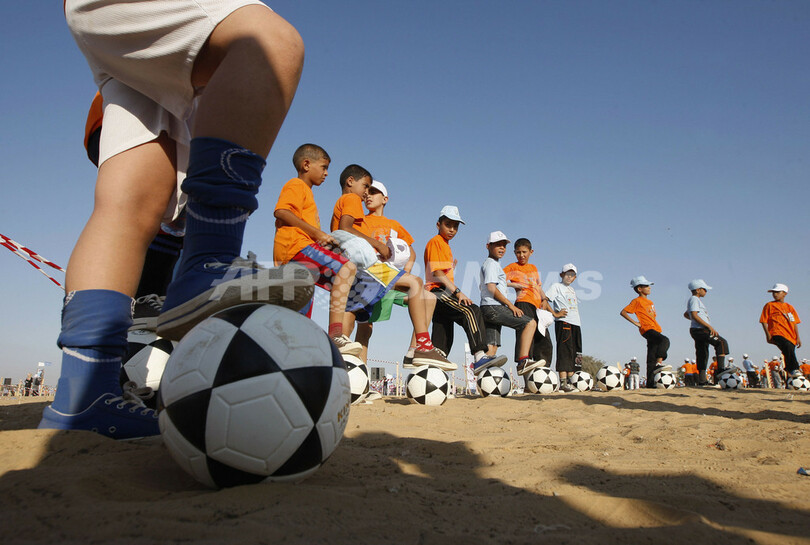 パレスチナの子どもたち、サッカーボールで世界記録に挑戦 ガザ地区