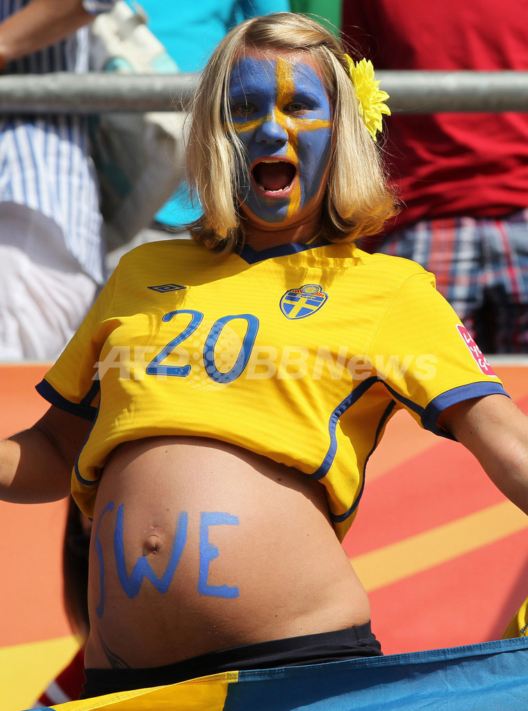 試合開始を待つスウェーデンのサポーター(2011年7月16日撮影)。(c)AFP/DANIEL ROLAND