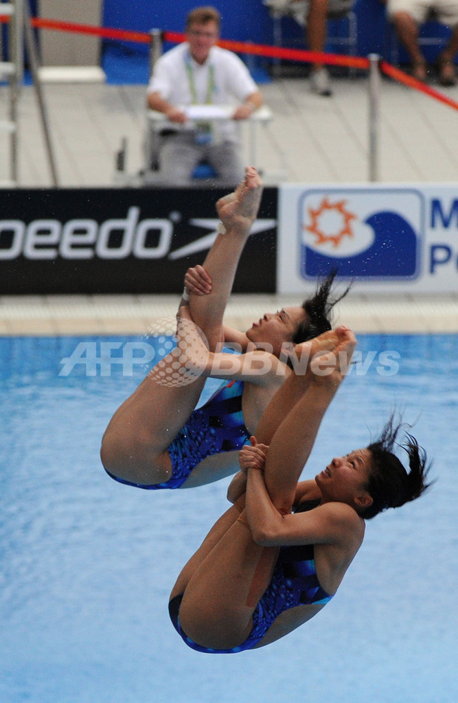 【7月17日 AFP】第14回世界水泳選手権(14th FINA World Championships)は16日に開幕を迎え、女子3メートルシンクロ板飛び込みで、地元中国の呉敏霞(Wu Minxia)/何姿(He Zi)組が356.40点で金メダルを獲得した。