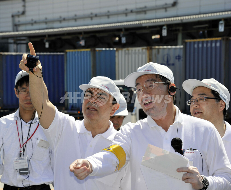 ニュース 政治・経済 日産のゴーン社長、土曜出勤の従業員を激励 本牧専用埠頭 2011年7月17日 18:50 発信地:神奈川 [ アジア・オセアニア 神奈川 ] このニュースをシェア ‹ › ❮ 7/12 ❯ 日産自動車(Nissan Motor)のカルロス・ゴーン(Carlos Ghosn)社長は16日、神奈川県横浜市にある同社最大の完成車と部品の輸出拠点である本牧専用埠頭を訪れ、節電のために土曜出勤する従業員らを激励した。写真は施設を視察するゴーン社長(2011年7月16日撮影)。(c)AFP/Yoshikazu TSUNO 画像作成中 ! 【7月17日 AFP】日産自動車(Nissan Motor)のカルロス・ゴーン(Carlos Ghosn)社長は16日、神奈川県横浜市にある同社最大の完成車と部品の輸出拠点である本牧専用埠頭を訪れ、節電のために土曜出勤する従業員らを激励した。(c)AFP 政治・経済 一覧へ> メディア・報道関係・法人の方向け 写真・動画 購入のお問合せ>