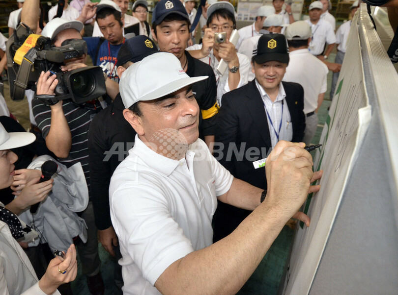 ニュース 政治・経済 日産のゴーン社長、土曜出勤の従業員を激励 本牧専用埠頭 2011年7月17日 18:50 発信地:神奈川 [ アジア・オセアニア 神奈川 ] このニュースをシェア ‹ › ❮ 3/12 ❯ 日産自動車(Nissan Motor)のカルロス・ゴーン(Carlos Ghosn)社長は16日、神奈川県横浜市にある同社最大の完成車と部品の輸出拠点である本牧専用埠頭を訪れ、節電のために土曜出勤する従業員らを激励した。写真は施設視察中に、サインを残すゴーン社長(2011年7月16日撮影)。(c)AFP/Yoshikazu TSUNO 画像作成中 ! 【7月17日 AFP】日産自動車(Nissan Motor)のカルロス・ゴーン(Carlos Ghosn)社長は16日、神奈川県横浜市にある同社最大の完成車と部品の輸出拠点である本牧専用埠頭を訪れ、節電のために土曜出勤する従業員らを激励した。(c)AFP 政治・経済 一覧へ> メディア・報道関係・法人の方向け 写真・動画 購入のお問合せ>
