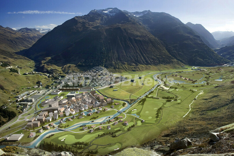 マンションは現在分譲中で、価格は1戸あたり100万スイスフラン(約9700万円)を超える見通しだ。18ホールのゴルフ場のための芝生の植え付けも始まっており、交通の利便性向上のための道路や橋の建設も進んでいる。