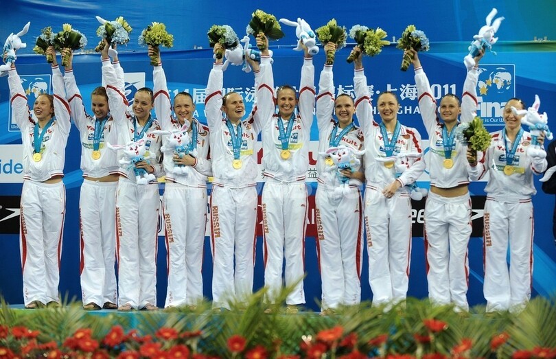 【7月19日 AFP】第14回世界水泳選手権(14th FINA World Championships)は19日、シンクロナイズドスイミングのチームテクニカルルーティン(TR)の決勝が行われ、98.300点を記録したロシアが金メダルを獲得した。