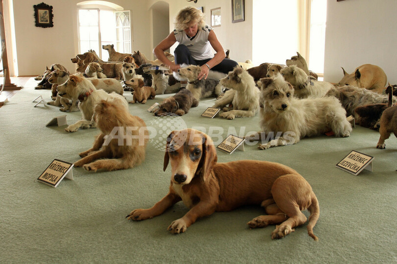 【7月20日 AFP】チェコ東部の南モラバ(South Moravia)にあるビートフ城(Bitov Castle)には、この城のかつての城主が手掛けた世界最多の犬の剥製がある。1945年、オーストリアへの国外追放を前に自殺した同城主は、数千匹の動物と約200匹の犬を所有していた。剥製にされたのは200匹の犬のうちの51匹で、そのほかの犬は城の周囲にそれぞれ埋葬され、その墓には名前を彫った小さな金属板と木製の十字架が添えられている。(c)AFP