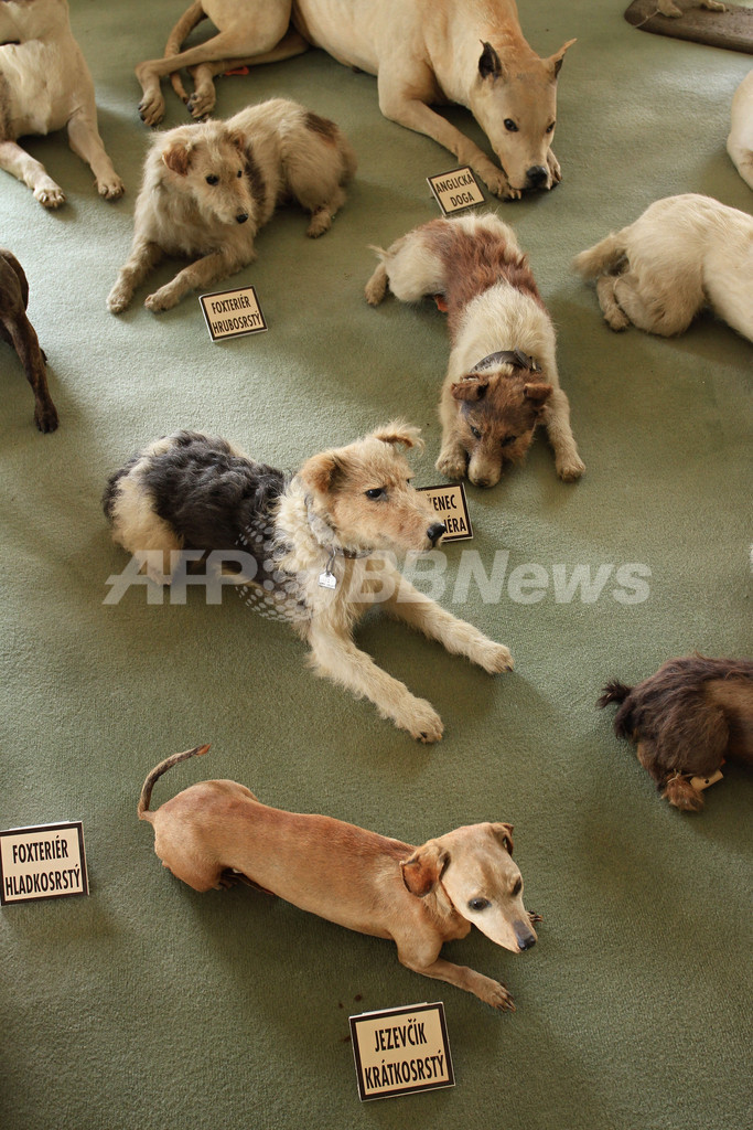 【7月20日 AFP】チェコ東部の南モラバ(South Moravia)にあるビートフ城(Bitov Castle)には、この城のかつての城主が手掛けた世界最多の犬の剥製がある。1945年、オーストリアへの国外追放を前に自殺した同城主は、数千匹の動物と約200匹の犬を所有していた。剥製にされたのは200匹の犬のうちの51匹で、そのほかの犬は城の周囲にそれぞれ埋葬され、その墓には名前を彫った小さな金属板と木製の十字架が添えられている。(c)AFP
