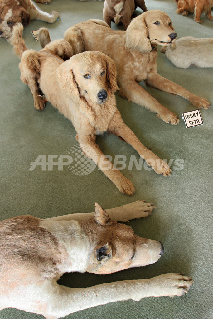 【7月20日 AFP】チェコ東部の南モラバ(South Moravia)にあるビートフ城(Bitov Castle)には、この城のかつての城主が手掛けた世界最多の犬の剥製がある。1945年、オーストリアへの国外追放を前に自殺した同城主は、数千匹の動物と約200匹の犬を所有していた。剥製にされたのは200匹の犬のうちの51匹で、そのほかの犬は城の周囲にそれぞれ埋葬され、その墓には名前を彫った小さな金属板と木製の十字架が添えられている。(c)AFP