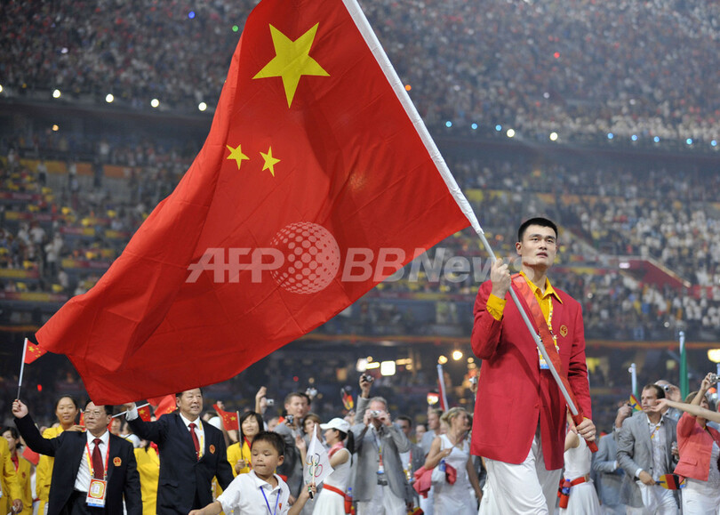 北京五輪の開会式で旗手を務めた姚明(2008年8月8日撮影)。(c)AFP/FABRICE COFFRINI