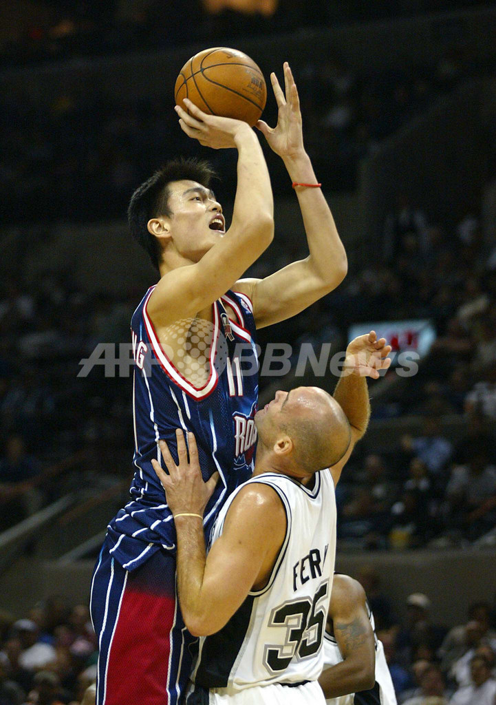 サンアントニオ・スパーズ(San Antonio Spurs)戦でプレーする姚明(2003年2月18日撮影)。(c)AFP/Paul BUCK
