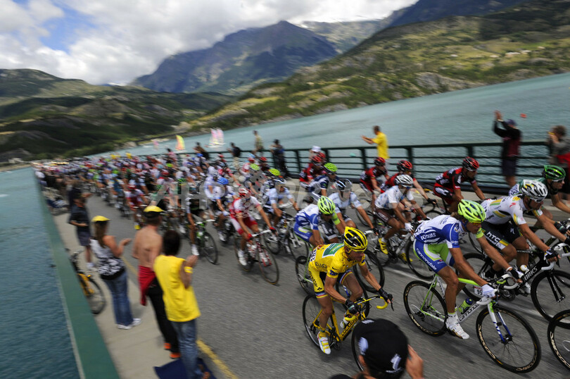 しかしながらヴォクレールは、総合2位につけるBMCレーシングチーム(BMC Racing Team)のカデル・エヴァンス(Cadel Evans、オーストラリア)、レオパード・トレック(Leopard Trek)所属の同3位フランク・シュレク(Frank Schleck、ルクセンブルク)と同4位アンディ・シュレク(Andy Schleck、ルクセンブルク)、そして、サクソバンク・サンガード(Saxo Bank-Sungard)のアルベルト・コンタドール(Alberto Contador、スペイン)らが形成していた集団から遅れをとり、合計タイムで27秒をロスしている。(c)AFP