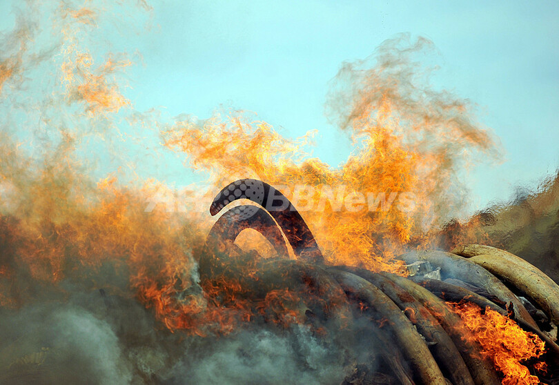 象牙5トンに点火、密猟撲滅へ決意示す ケニア