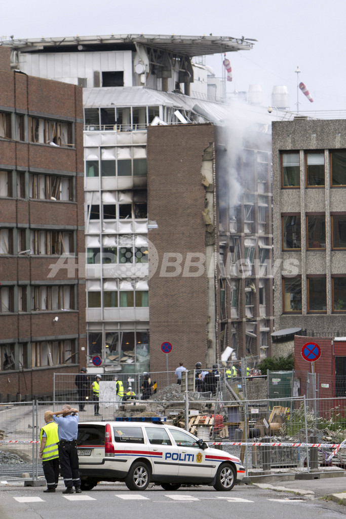 警察によるとオスロ中心部の爆発では7人が死亡、数十人が負傷し、負傷者のうち9人は重傷を負った。首相府が入る建物などいくつかのビルは大きく損壊した。周囲の歩道には割れたガラスなどが散乱し、がれきからは煙が立ち上った。