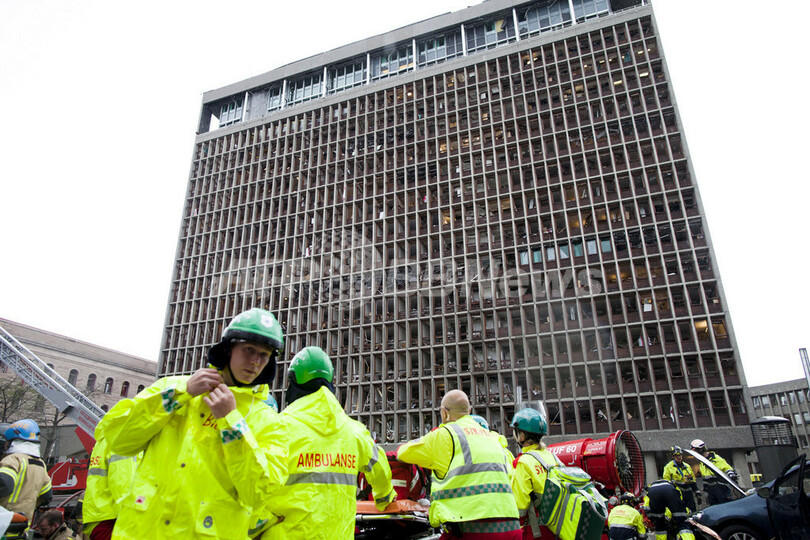 警察によるとオスロ中心部の爆発では7人が死亡、数十人が負傷し、負傷者のうち9人は重傷を負った。首相府が入る建物などいくつかのビルは大きく損壊した。周囲の歩道には割れたガラスなどが散乱し、がれきからは煙が立ち上った。