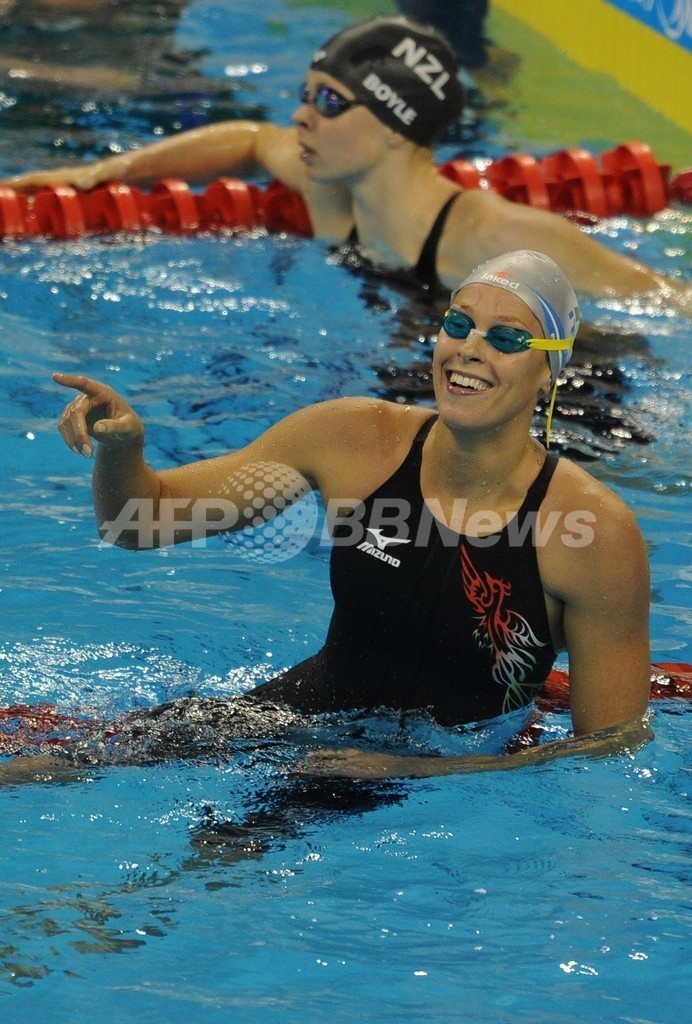 4分4秒01を記録した英国のレベッカ・アドリントン(Rebecca Adlington)が銀メダル、4分4秒06を記録したフランスのカミーユ・ミュファ(Camille Muffat)が銅メダルを獲得した。(c)AFP