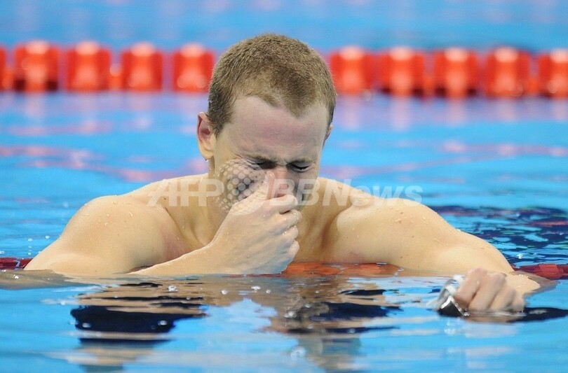 23秒28でオーストラリアのマシュー・ターゲット(Matthew Targett)が銀メダル、23秒35でオーストラリアのジェフ・ヒューギル(Geoff Huegill)が銅メダルを獲得した。(c)AFP