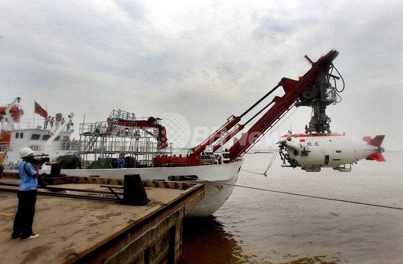 【7月26日 AFP】(写真追加)中国国家海洋局は26日、有人潜水調査船「蛟竜(Jiaolong)」号が、同国の有人潜水船として初めて水深5000メートルに達したと発表した。