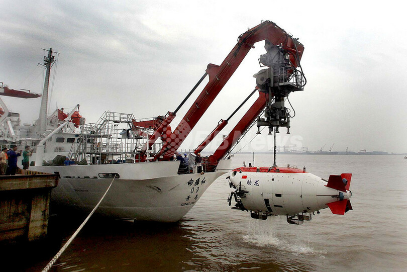 【7月26日 AFP】(写真追加)中国国家海洋局は26日、有人潜水調査船「蛟竜(Jiaolong)」号が、同国の有人潜水船として初めて水深5000メートルに達したと発表した。