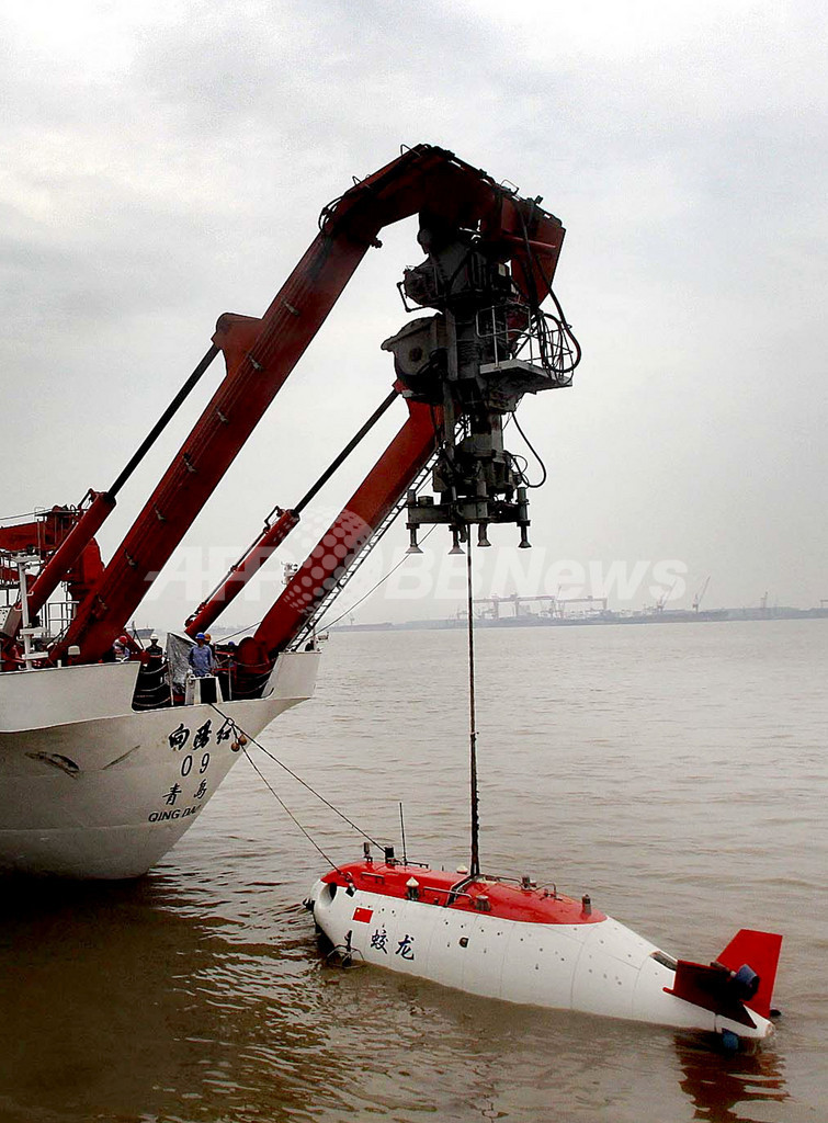 【7月26日 AFP】(写真追加)中国国家海洋局は26日、有人潜水調査船「蛟竜(Jiaolong)」号が、同国の有人潜水船として初めて水深5000メートルに達したと発表した。