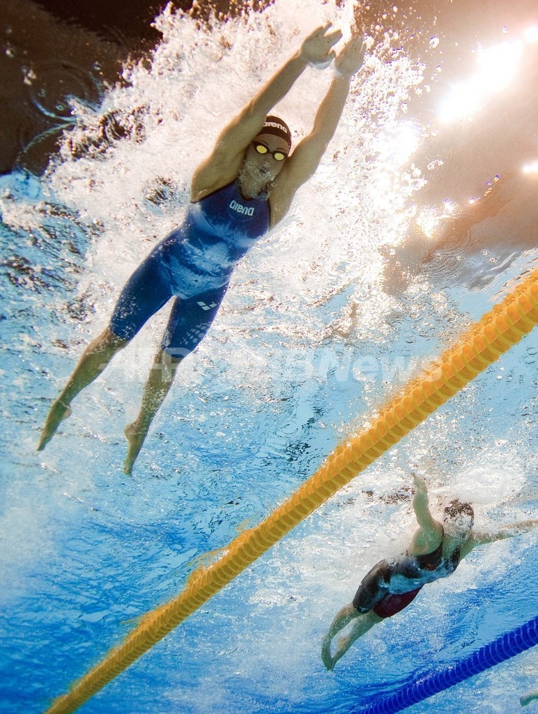 オーストラリアのリーゼル・ジョーンズ(Leisel Jones)が1分6秒25で銀メダル、中国の季丽萍(Ji Liping)が1分6秒52で銅メダルを獲得した。(c)AFP