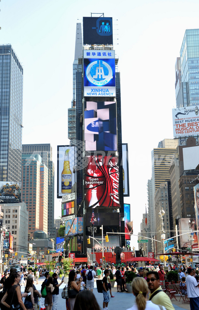 新華社の広告の上には米保険大手プルデンシャル(Prudential)の広告が、下にはコカ・コーラ(Coca-Cola)や韓国のサムスン電子(Samsung Electronics)、現代(Hyundai)の広告がある。摩天楼に囲まれ、劇場街に続く華やかなタイムズスクエアに、中国企業として初めて電子広告を出したと、新華社は誇らしげな声明を発表した。