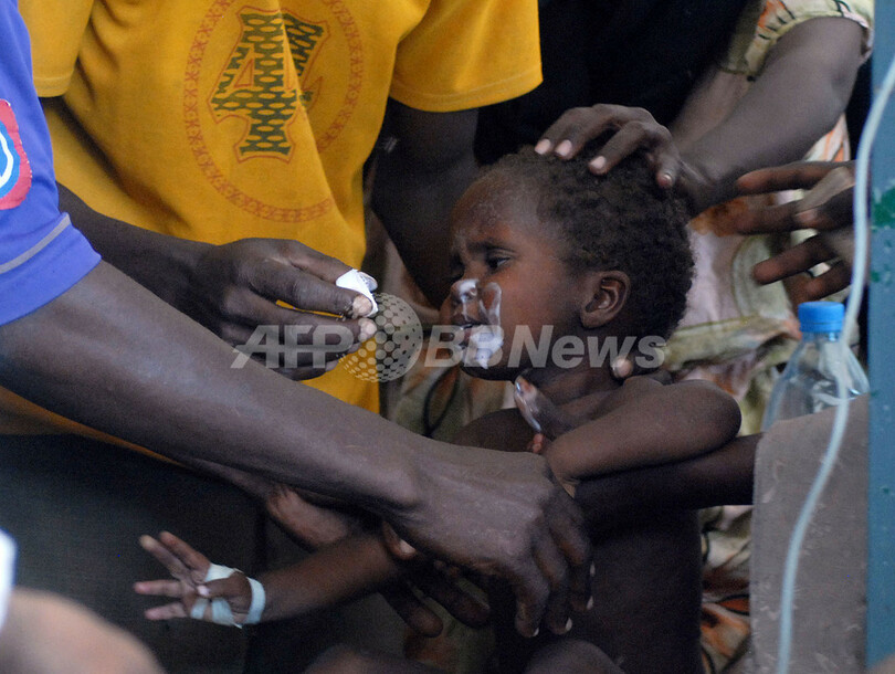 写真は、ソマリアの首都モガディシオ(Mogadishu)の病院で手当てを受ける栄養失調の子ども(2011年7月23日撮影)。(c)AFP/Mustafa ABDI