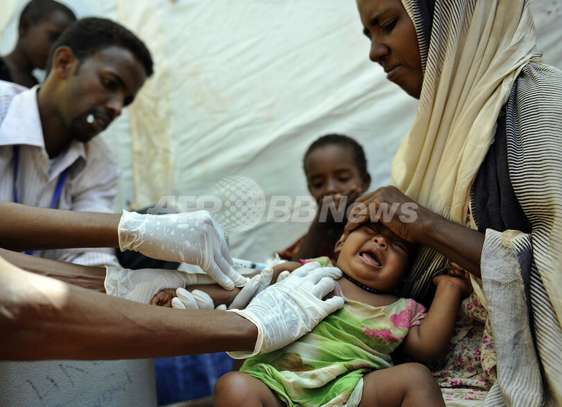 写真は、ダダーブ難民キャンプでワクチンを接種される子ども(2011年8月1日撮影)。(c)AFP/Tony KARUMBA
