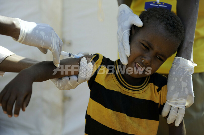 写真は、ダダーブ難民キャンプでワクチンを接種される子ども(2011年8月1日撮影)。(c)AFP/Tony KARUMBA