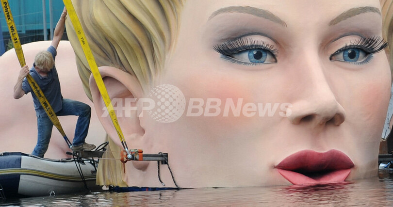 Alster)湖に出現した巨大な女性の彫刻「ジャイアント・マーメイド(