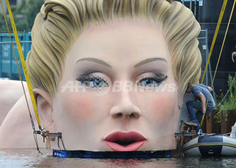 Alster)湖に出現した巨大な女性の彫刻「ジャイアント・マーメイド(