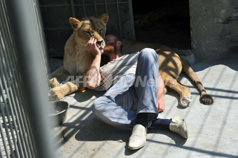 ニュース ライフ ライオンのカップルとの奇妙な同居生活、ウクライナ 2011年8月6日 18:23 発信地:Vasylivka/ウクライナ [ ロシア・CIS ウクライナ ] このニュースをシェア ‹ › ❮ 14/14 ❯ ウクライナの小さな街Vasylivkaにある私設動物園で3日、経営者のAlexander Pylyshenkoさんがオスライオン「サムソン」とメスライオン「カトヤ」の囲いの中で、同居生活を始めた。35日間の同居期間中、動物園の運営費を募るとともに、同国各地の私設動物園で飼われているライオンたちの過酷な環境について世間の注目を集めたいという(2011年8月3日撮影)。(c)AFP/SERGEI SUPINSKY 画像作成中 ! 【8月4日 AFP】(写真追加)ウクライナの小さな街Vasylivkaにある私設動物園で3日、経営者のAlexander Pylyshenkoさんがオスライオン「サムソン」とメスライオン「カトヤ」の囲いの中で、同居生活を始めた。35日間の同居期間中、動物園の運営費を募るとともに、同国各地の私設動物園で飼われているライオンたちの過酷な環境について世間の注目を集めたいという。(c)AFP ライフ 一覧へ> メディア・報道関係・法人の方向け 写真・動画 購入のお問合せ>