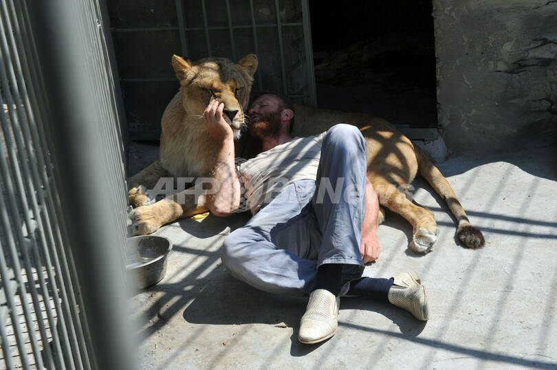 ニュース ライフ ライオンのカップルとの奇妙な同居生活、ウクライナ 2011年8月6日 18:23 発信地:Vasylivka/ウクライナ [ ロシア・CIS ウクライナ ] このニュースをシェア ‹ › ❮ 12/14 ❯ ウクライナの小さな街Vasylivkaにある私設動物園で3日、経営者のAlexander Pylyshenkoさんがオスライオン「サムソン」とメスライオン「カトヤ」の囲いの中で、同居生活を始めた。35日間の同居期間中、動物園の運営費を募るとともに、同国各地の私設動物園で飼われているライオンたちの過酷な環境について世間の注目を集めたいという(2011年8月3日撮影)。(c)AFP/SERGEI SUPINSKY 画像作成中 ! 【8月4日 AFP】(写真追加)ウクライナの小さな街Vasylivkaにある私設動物園で3日、経営者のAlexander Pylyshenkoさんがオスライオン「サムソン」とメスライオン「カトヤ」の囲いの中で、同居生活を始めた。35日間の同居期間中、動物園の運営費を募るとともに、同国各地の私設動物園で飼われているライオンたちの過酷な環境について世間の注目を集めたいという。(c)AFP ライフ 一覧へ> メディア・報道関係・法人の方向け 写真・動画 購入のお問合せ>