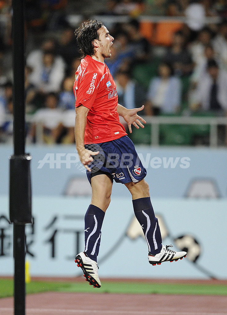後半3分に勝ち越しゴールを決めて歓喜するインデペンディエンテのファクンド・パッラ(Facundo Parra、2011年8月3日撮影)。(c)AFP/Toru YAMANAKA