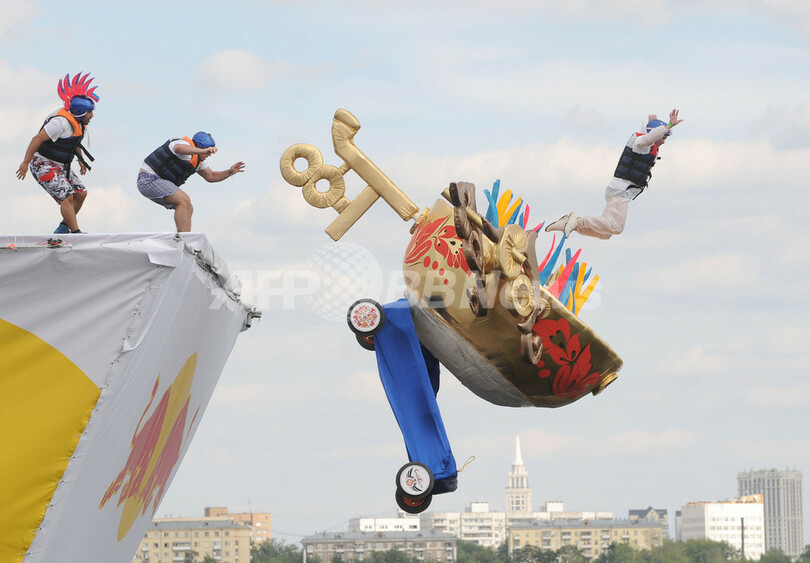 ニュース ライフ こぼれ話 飛んでるつもりです、ロシアの鳥人間コンテスト 2011年8月8日 9:34 発信地:モスクワ/ロシア [ ロシア・CIS ロシア ] このニュースをシェア ‹ › ❮ 2/10 ❯ ロシア・モスクワ(Moscow)で7日、自作の人力飛行機で飛行距離を競うコンテスト「フルークターク(Flugtag)が開催された。参加者たちはおのおの、個性的な飛行機で高さ6メートルの発射台から勢いよく飛び出して行った(2011年8月7日撮影)。(c)AFP/NATALIA KOLESNIKOVA勢いよく落ちる?出場者たち【動画】(YouTube/AFPBB News公式チャンネル) 画像作成中 ! 【8月8日 AFP】ロシア・モスクワ(Moscow)で7日、自作の人力飛行機で飛行距離を競うコンテスト「フルークターク(Flugtag)が開催された。参加者たちはおのおの、個性的な飛行機で高さ6メートルの発射台から勢いよく飛び出して行った。(c)AFP ライフ 一覧へ> メディア・報道関係・法人の方向け 写真・動画 購入のお問合せ>