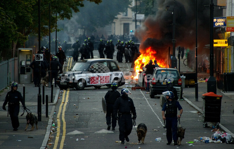 【8月9日 AFP】(写真追加)英ロンドン(London)北部のトッテナム(Tottenham)で若者が警官に射殺された事件をきっかけに6日に発生した暴動は、8日夜から9日未明にかけて市内および郊外各地に広がり、ロンドンは混乱の様相を呈している。さらに暴動は、中部バーミンガム(Birmingham)やリバプール(Liverpool)にも飛び火。デービッド・キャメロン(David Cameron)は非常事態に対処するため、伊トスカーナ(Tuscany)での休暇を切り上げ、英国に向かっている。